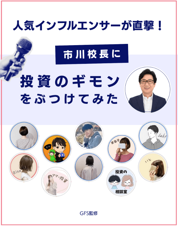 この動画では、人気インフルエンサー総勢10人が、GFSの市川校長に投資に関する本音の質問をぶつけて、その質問に解説してくれる内容になっているよ。