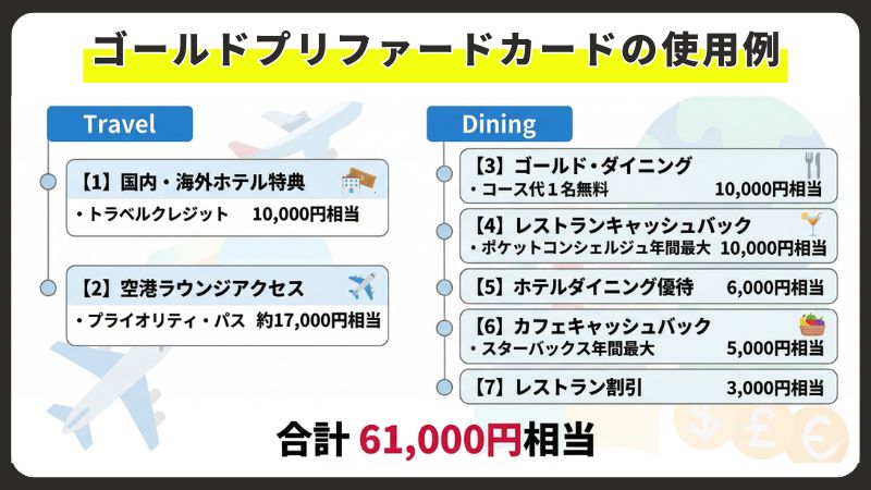 さらにゴールドプリファードカードには、オトクな特典がたくさんあるよ♪
